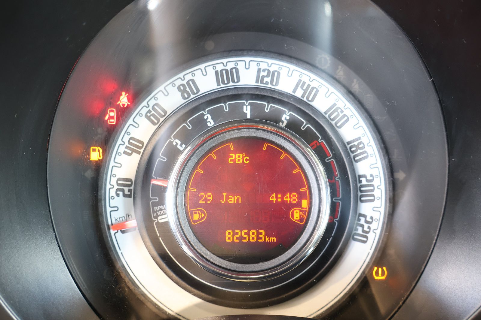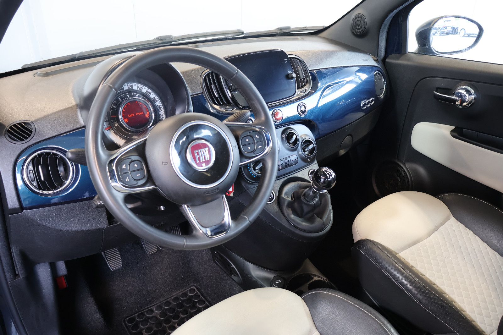 Ablagetasche an Vordersitzlehnen, Airbag Fahrer-/Beifahrerseite, Auspuffblende verchromt, Autom. Begleitfunktion der Beleuchtung (Follow me home), Automatische Türverriegelung, Außenspiegel Wagenfarbe, Beifahrerairbag abschaltbar, Bordcomputer, Fahrassistenz-System: Bremsassistent, Fensterzierleisten verchromt, Fußmatten, Geschwindigkeits-Begrenzeranlage, Heckscheibe heizbar, Innenausstattung: Dekoreinlagen Armaturenbrett, Isofix-Aufnahmen für Kindersitz an Rücksitz, Karosserie: 3-türig, Knieairbag Fahrerseite, Komfort-Paket, Kopf-Airbag-System vorn und hinten, Kopfstützen hinten, Kopfstützen vorn verstellbar, Kühlergrill mit Chromrahmen, Kühlergrill verchromt, Lenksäule (Lenkrad) höhenverstellbar, LM-Felgen, Mild-Hybrid 51 kW (Motor 1,0 Ltr. - 51 kW), Modellpflege, Panoramadach (Glas), Radioempfang digital (DAB+), Reifendruck-Kontrollsystem, Rücksitz geteilt / klappbar, Schadstoffarm nach Abgasnorm Euro 6d, Schalt-/Wählhebelgriff Leder, Seitenairbag vorn, Seitenschutzleisten inkl. Emblem 500, Sitzbezug / Polsterung: Stoff / Vinyl, Smartphone Schnittstelle (Apple CarPlay & Android Auto), Start/Stop-Anlage, Steckdose (12V-Anschluß) im Armaturenbrett, Steckdose (12V-Anschluß) vorn, Stoßfänger Wagenfarbe, Tagfahrlicht LED, Tankdeckel abschließbar, Türgriffe außen verchromt, Wärmeschutzverglasung