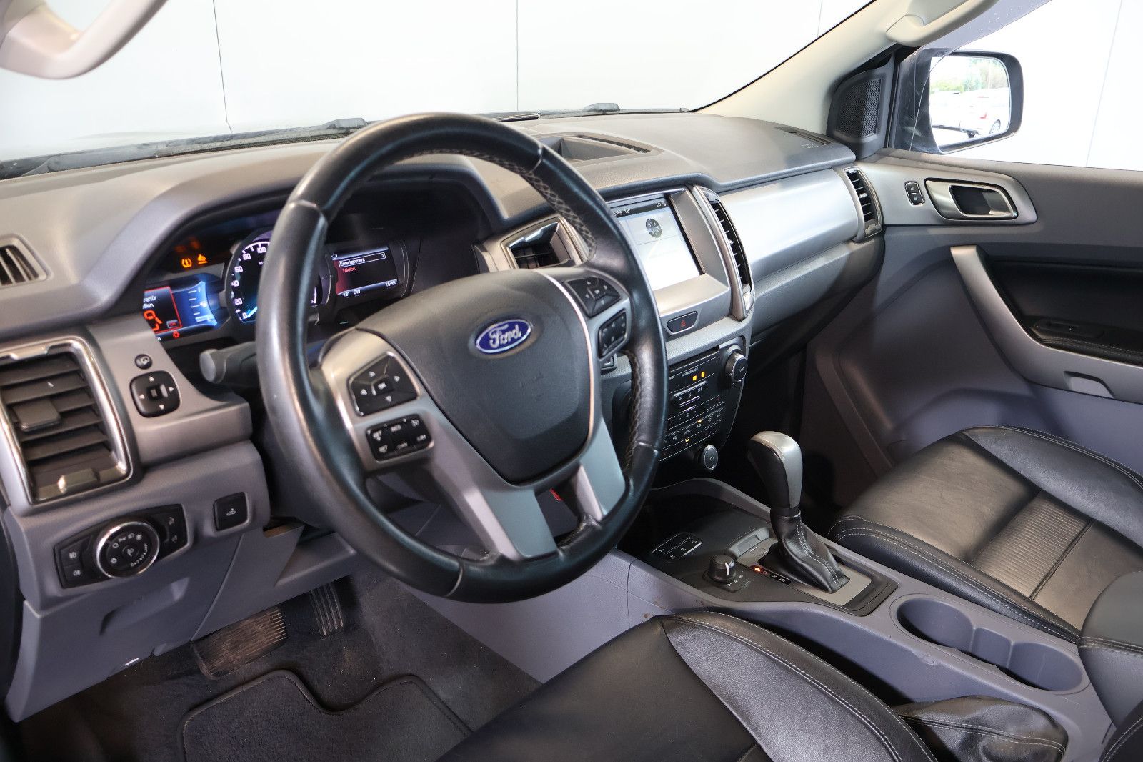 2.Sitzreihe mit Sitzbank, 3. Bremsleuchte, Airbag Beifahrerseite abschaltbar, Außenspiegel elektr. anklappbar, Außenspiegel elektr. verstell- und heizbar, Außenspiegel verchromt, Außentemperaturanzeige, Batterie verstärkt, Blinkleuchte in Außenspiegel integriert, Bluetooth-Schnittstelle, Bodenleuchte im Außenspiegel, Bordcomputer, Brillenfach in Dachhimmel / Dachkonsole integriert, Dachkonsole mit Leseleuchten, Fahrassistenz-System: Notbrems-Assistent, Fensterheber elektrisch hinten, Fußmatten Teppich, Gurtstraffer, Heckscheibe heizbar, Innenspiegel mit Abblendautomatik, Intelligent Protection System (IPS), Isofix-Aufnahmen für Kindersitz, Karosserie/Aufbau: Pritsche, Doppelkabine, Kindersicherung elektrisch, Klimaautomatik 2-Zonen, Knieairbag Fahrerseite, Laderaumschienen, Laderaumwanne, Lendenwirbelstütze Sitz vorn links, Lenksäule (Lenkrad) höhenverstellbar, LM-Felgen, Mittelkonsole Premium, Modellpflege, Motor 2,2 Ltr. - 118 kW TDCi KAT, Parkpilotsystem hinten, Radstand 3220 mm, Reifendruck-Kontrollsystem, Reserverad in Fahrbereifung (Stahl), Schadstoffarm nach Abgasnorm Euro 6, Schalt-/Wählhebelgriff Chrom / Leder, Scheinwerfer-Assistent mit Tag-/Nachtsensor, Schmutzfänger hinten, Schmutzfänger vorn, Schwellerrohre (Edelstahl), Sitz vorn links elektr. verstellbar (8-fach), Sitzbezug / Polsterung: Leder, Sitzheizung vorn, Sportbügel hinten verchromt (Ladefläche), Steckdose (12V-Anschluß) im Koffer-/Laderaum, Stoßfänger hinten Stahl, teilweise verchromt mit Trittstufe, Stoßfänger Wagenfarbe, Stoßfängereinsätze Kontrastfarbe, Teppichboden in Fahrgast-/Laderaum, Türgriffe außen verchromt, Verglasung getönt, Verglasung hinten abgedunkelt (Privacy Glass), Vorbereitungs-Paket Tachograph, Zierleisten unterhalb Seitenscheiben Chrom-Dekor
