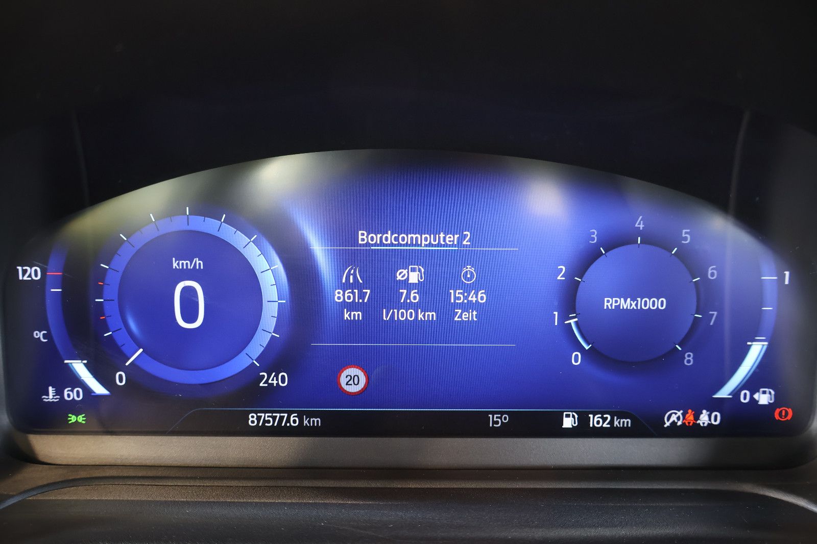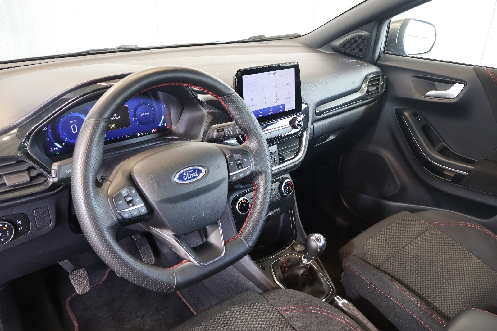 Antischlupfregelung (ASR), Audio-Navigationssystem Ford mit AppLink, Außenspiegel elektr. anklappbar, Außenspiegel elektr. verstell- und heizbar, Body-Styling-Paket, Dachhimmel Stoff, dunkel, Eco-Anzeige für verbrauchsoptimiertes Fahren (EcoCoach), Einparkhilfe hinten, Fahrassistenz-System: Berganfahr-Assistent (Hill-Holder), Fahrassistenz-System: Falschfahrer-Warnfunktion, Fahrassistenz-System: Fernlichtassistent (Scheinwerfer mit Abblendautomatik), Fahrassistenz-System: Notbrems-Assistent, Fahrassistenz-System: Post-Collision-System, Fahrassistenz-System: Pre-Collision-System, Fahrassistenz-System: Spurhalteassistent mit Müdigkeitserkennungs-Sensor, Fahrassistenz-System: Verkehrsschildassistent, Farbdisplay für Bordcomputer, Fensterheber elektrisch vorn + hinten mit Komfortschließung, FordPass Connect inkl. eCall, Fußmatten Teppich, Getriebe 6-Gang - Typ: 6MX65, Heckleuchten LED, Innenraumfilter: Staub- und Pollenfilter, Intelligent Protection System (IPS), Intelligenter Geschwindigkeits-Begrenzer, Isofix-Aufnahmen für Kindersitz, Karosserie: 5-türig, Kombiinstrument Digitalanzeige 12,3 Zoll, Kopfstützen hinten mechan. verstellbar (3 Stück), Laderaumboden variabel (Ford Megabox), Lendenwirbelstütze Sitz vorn links, Lenksäule (Lenkrad) höhen-/längsverstellbar, LM-Felgen, Mild-Hybrid 92 kW (Motor 1,0 Ltr. - 92 kW EcoBoost), My Key (2. Fahrzeugschlüssel programmierbar), Nebelscheinwerfer LED, Otto-Partikelfilter (OPF), Pedale Aluminium, Radstand 2588 mm, Reifen-Reparaturkit, Reifendruck-Kontrollsystem, Rücksitzlehne geteilt/klappbar (60:40), Schadstoffarm nach Abgasnorm Euro 6d, Scheinwerfer LED, Scheinwerfer-Assistent mit Tag-/Nachtsensor, Sitze vorn höhenverstellbar, Sonnenblende links mit Spiegel (beleuchtet), Sonnenblende rechts mit Spiegel (beleuchtet), Sport-Fahrwerk, Sportsitze vorn, Standard Variante, Start/Stop-Anlage, Türgriffe außen Wagenfarbe