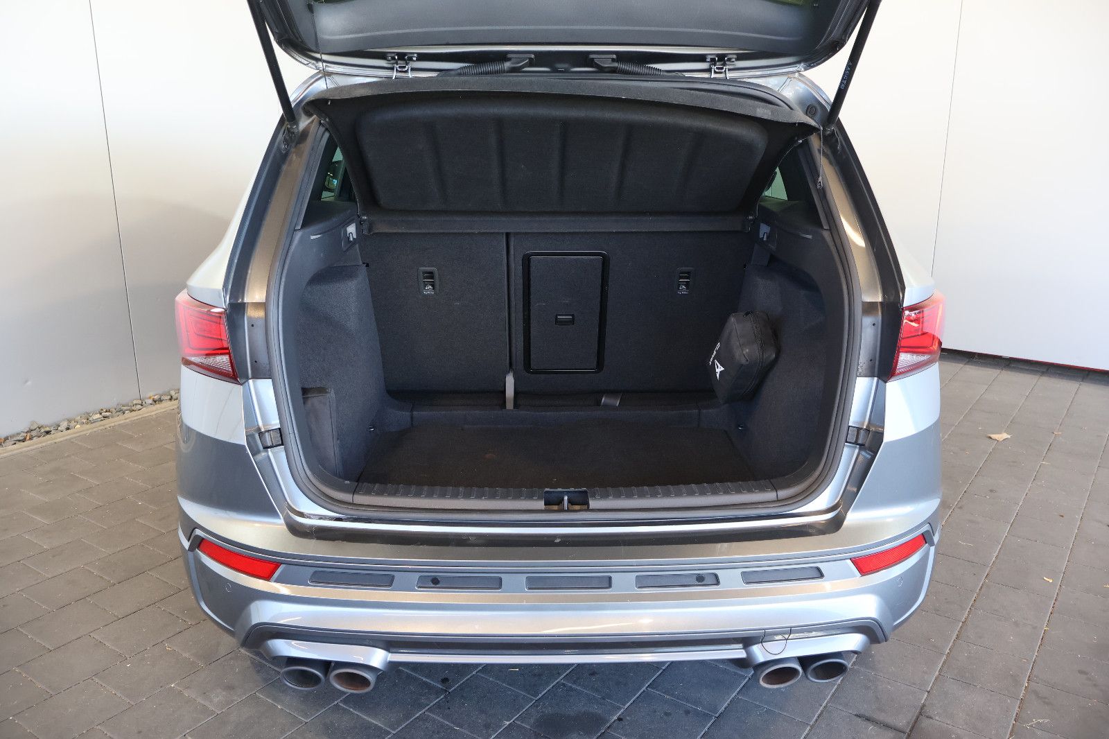 3. Bremsleuchte, Ablagetasche an Vordersitzlehnen, Airbag Beifahrerseite abschaltbar, Airbag Fahrer-/Beifahrerseite, Ambiente-Beleuchtung LED, Antriebs-Schlupfregelung (ASR), Audio-Navigationssystem mit Touchscreen Farbbildschirm, Außenspiegel elektr. verstell-, heiz- und anklappbar mit Spiegelabsenkung und Welcome Light, Bluetooth-Schnittstelle mit Freisprecheinrichtung integriert, Bordcomputer, Brillenfach, Dachhimmel schwarz, Dachreling schwarz, Doppelendrohr Auspuffanlage, links/rechts, Doppeltonhorn, Einstiegsleisten (Aluminium) vorn, beleuchtet, Elektron. Differentialsperre (XDS), Fahrassistenz-System: Adaptive Fahrwerksregelung (DCC), Fahrassistenz-System: Fahrprofilauswahl (CUPRA Drive Profile),Fahrassistenz-System: Parklenkassistent mit Einparkhilfe vorn und hinten inkl. Rückfahrkamera, Fensterheber elektrisch vorn + hinten mit Komfortschaltung, Fußraumbeleuchtung LED, Gepäckraumabdeckung / Rollo, Handschuhfach mit LED-Beleuchtung, Heckleuchten LED mit dynamischem Blinklicht, Heckspoiler Wagenfarbe (Dachspoiler), Induktionsladeschale für Smartphone, Isofix-Aufnahmen für Kindersitz an Rücksitz, Kamerasystem Umgebungsansicht (Top View, 360°), Karosserie: 5-türig, Klimaanlage Climatronic 2-Zonen, Knieairbag Fahrerseite, Kombiinstrument digital (virtual cockpit), Kopf-Airbag-System, Lendenwirbelstütze Sitz vorn links, verstellbar, Lendenwirbelstütze Sitz vorn rechts, verstellbar, Licht- und Sicht-Paket, LM-Felgen, Mittelarmlehne hinten, Mittelkonsole vorn mit Mittelarmlehne, Becherhalter, Ablagebox und Luftausströmer hinten, Modellpflege, Motor 2,0 Ltr. - 221 kW 16V TSI, Notrufsystem, Otto-Partikelfilter (OPF), Parkbremse elektrisch, Pedale Aluminium-Design, Radlaufabdeckung vorn und hinten lackiert, Radstand 2631 mm, Reifen-Reparaturset, Rücksitzlehne geteilt/klappbar (1/3-2/3), Schadstoffarm nach Abgasnorm Euro 6d, Schriftzug auf der Heckklappe, Seitenairbag, Seitenscheiben hinten und Heckscheibe abgedunkelt, Sitz vorn links höhenverstellbar, Sitz vorn rechts höhenverstellbar, Sitzbezug / Polsterung: Sitzmittelbahn in Mikrofaser, Sonnenblende links mit Spiegel (beleuchtet), Sonnenblende rechts mit Spiegel (beleuchtet), Sport-Schalensitze vorn mit integrierten Kopfstützen, Start/Stop-Anlage, Stau-/Ablagefach unter Sitz vorn links, Steckdose (12V-Anschluß) vorn, Stoßfänger hinten Cupra-Design mit Diffusor, Stoßfänger vorn Cupra-Design, USB-Ladeanschlüsse (2-fach, Typ C) für 2.Sitzreihe, Verzurrösen Koffer-/Laderaum, Wärmeschutzverglasung