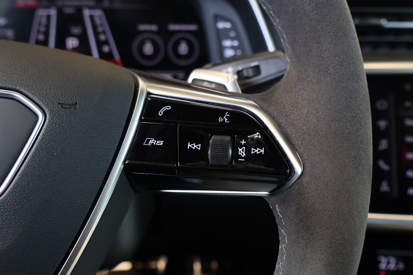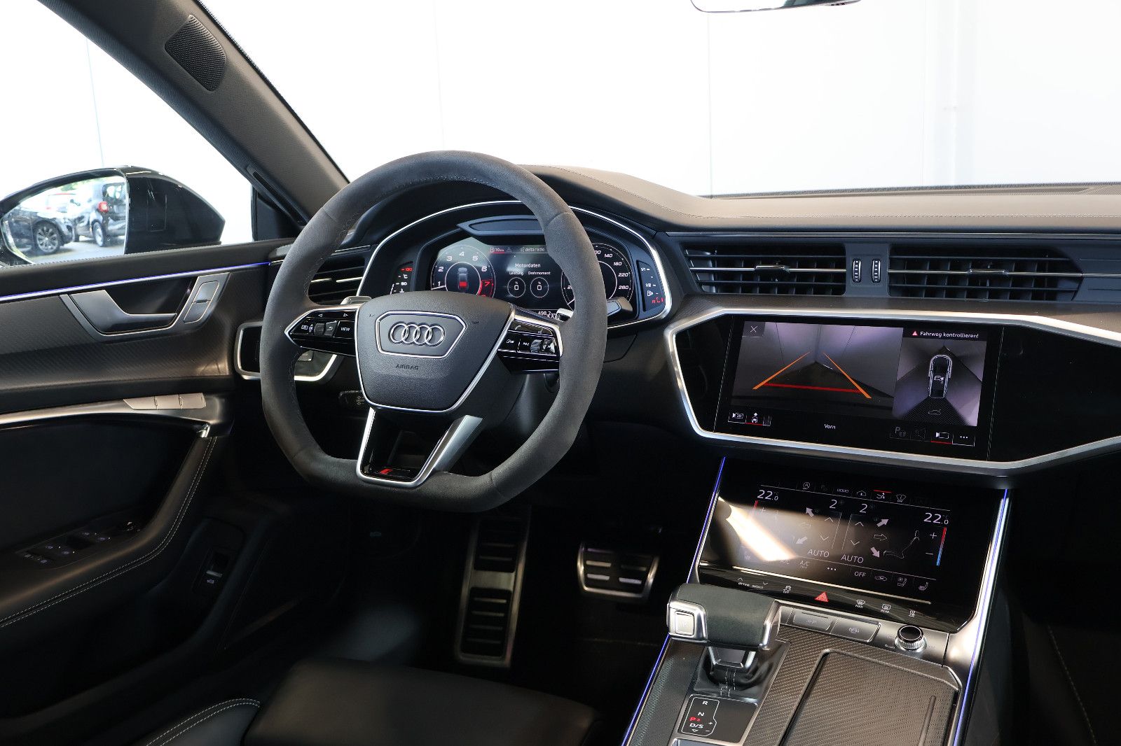 Ablage-Paket, Airbag Beifahrerseite abschaltbar, Airbag Fahrer-/Beifahrerseite, Akustikglas Türscheiben seitlich, Audi connect (Internetbasierende Dienste), Audi connect (Notruf- und Assistance-System), Audi Drive Select, Audi music interface, Audi Smartphone Interface, Außenspiegel asphärisch, links, Außenspiegel asphärisch, rechts, Bedienelemente Glasoptik, inkl. erweiterter Aluminium-Optik, Blinkleuchten LED in Außenspiegel integriert, Dachhimmel Stoff, schwarz, Diebstahlsicherung für Räder (Felgenschlösser), Doppel-Sonnenblenden (verschiebbar, ausziehbar), Einstiegsleisten mit Aluminiumeinlage und Schriftzug, beleuchtet, Einstiegsleuchten LED mit Projektionsfunktion, Fahrassistenz-System: Bremsassistent (Audi pre sense front), Fahrassistenz-System: Fernlichtassistent, Fahrassistenz-System: Insassen-Schutzsystem (Audi pre sense basic), Fahrassistenz-System: Spurverlassenswarnung, Fahrer-Informations-System (FIS) mit Farbdisplay, Fensterheber elektrisch hinten, Gepäckraumklappe elektr. betätigt (öffnen + schliessen), Geschwindigkeits-Begrenzeranlage, Heckleuchten LED mit dynamischem Blinklicht, Heckspoiler (elektrisch ausfahrbar), Innenausstattung: Dekoreinlagen Aluminium Race Anthrazit, Innenausstattung: Interieurelemente in Kunstleder oben und unten, Innenspiegel mit Abblendautomatik, Isofix-Aufnahmen für Kindersitz, Isofix-Aufnahmen für Kindersitz an Beifahrersitz, Karosserie: 4-türig, Komfort-Klimaautomatik 4-Zonen, Kontur / Ambientebeleuchtungs-Paket (plus), Kopf-Airbag-System (Sideguard), Kraftstofftank: 73 Ltr., Lendenwirbelstützen vorn, elektr. verstellbar, Lenkrad heizbar (Sport/Leder - 3-Speichen, unten abgeflacht) mit Multifunktion plus und Schaltfunktion, Lenksäule (Lenkrad) elektr. verstellbar, Mild-Hybrid 441 kW (Motor 4,0 Ltr. - 441 kW V8 32V TFSI), Mild-Hybrid-Technologie, Multi-Media-Interface MMI Basic Plus / MMI Radio Plus, Multi-Media-Interface MMI Navigation Plus mit MMI Touch, Optik-Paket schwarz, Otto-Partikelfilter (OPF), Pedale und Fußstütze in Edelstahl, Radioempfang digital (DAB), Reifen-Reparaturkit, Reifendruck-Kontrollsystem, RS-Sportsitze vorn, Schadstoffarm nach Abgasnorm Euro 6d, Schalt-/Wählhebelgriff Leder gelocht (perforiert), Scheibenwaschdüsen heizbar, Seitenairbag vorn, Sitze vorn elektr. verstellbar (links mit Memory), Sitzheizung vorn, Start-Stop-Knopf, Start/Stop-Anlage, Stoßfänger RS-Version, Zentralverriegelung / Startanlage Keyless-Go