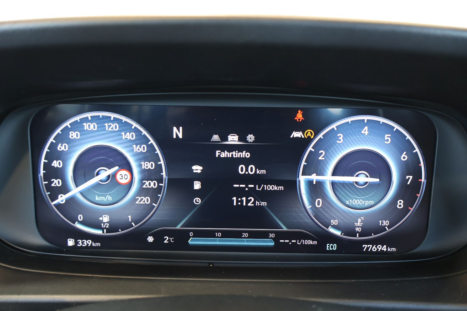 6 Lautsprecher, Airbag Beifahrerseite, Airbag Beifahrerseite abschaltbar, Airbag Fahrerseite, Aktives Bremslicht (ESS), Ambiente-Beleuchtung, Audiosystem: Radio RDS, Außenspiegel elektr. anklappbar, Außenspiegel elektr. verstell- und heizbar, beide, Blinkleuchte in Außenspiegel integriert, Bordcomputer, Bremsassistent, Dachspoiler, Digital Cockpit (Instrumentenanzeige Digital), Einschaltautomatik für Fahrlicht / Lichtsensor, Elektr. Bremskraftverteilung, Elektron. Stabilitätskontrolle (ESC) mit Bremsassistent, Fahrassistenz-System: aktiver Spurhalteassistent (LKAS, Lane Keep Assist System), Fahrassistenz-System: Aufmerksamkeits-Assistent, Fahrassistenz-System: Autonome Notbremsfunktion inkl. Frontkollisionswarnung (FCA), Fahrassistenz-System: Berganfahrhilfe, Fahrassistenz-System: Fahrprofilauswahl (Drive Mode), Fahrassistenz-System: Insassenalarm (Rear Occopant Alert, ROA), Fahrassistenz-System: Multikollisionsbremse (Multi Collision Brake), Fahrassistenz-System: Sicherheitssystem mit automatischem Notruf (ERA GLONASS / eCall), Fahrassistenz-System: Verkehrszeichenerkennung, erweitert (Geschwindigkeits-Regel-/Begrenzeranlage), Fensterheber elektrisch hinten, Freisprecheinrichtung Bluetooth, Funktions-Paket, Gegenlenkunterstützung (Vehicle Stability Management, VSM), Gepäck-/Laderaumleuchte, Gepäckraumabdeckung / Rollo, Getriebe 6-Gang - mit automatisierter Kupplung (iMT), Getränkehalter vorn, Gurtstraffer, Heckscheibe heizbar, Induktionsladeschale für Smartphone, Isofix-Aufnahmen für Kindersitz, Karosserie: 5-türig, Kopf-Airbag-System, Kopfstützen hinten verstellbar, Kühlergrill schwarz (glanzlackiert), Lenkrad (4-Speichen), Lenksäule (Lenkrad) höhenverstellbar, Lenksäule (Lenkrad) längsverstellbar, Leseleuchte, LM-Felgen, Mild-Hybrid 74 kW (Motor 1,0 Ltr. - 74 kW T-GDI), Mineraleffekt-Lackierung Mangrove Green, Motorhaubenisolierung, Otto-Partikelfilter (OPF), Radioempfang digital (DAB+), Reifen-Reparaturkit, Reifendruck-Kontrollsystem, Rückfahrkamera, Rücksitzlehne geteilt/klappbar, Schadstoffarm nach Abgasnorm Euro 6d, Schalt-/Wählhebelgriff Leder, Seitenairbag vorn, Sicherheitsgurte vorn höhenverstellbar, Sitz vorn links höhenverstellbar, Sitzbezug / Polsterung: Stoff, Sonnenblenden mit Spiegel (beleuchtet), Start/Stop-Anlage, Steckdose (12V-Anschluß) vorn, Türgriffe außen Wagenfarbe, USB-Anschluss + AUX-IN-Anschluss, USB-Anschluss hinten, USB-Anschluss Mittelkonsole, Verglasung getönt, Warnanlage für Sicherheitsgurte, Fahrer-/Beifahrerseite, Wireless SmartLink (Apple CarPlay)