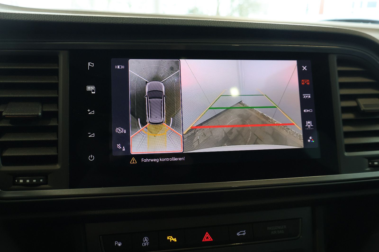 3. Bremsleuchte, Ablagetasche an Vordersitzlehnen, Airbag Beifahrerseite abschaltbar, Airbag Fahrer-/Beifahrerseite, Ambiente-Beleuchtung LED, Antriebs-Schlupfregelung (ASR), Audio-Navigationssystem mit Touchscreen Farbbildschirm, Außenspiegel elektr. verstell-, heiz- und anklappbar mit Spiegelabsenkung und Welcome Light, Bluetooth-Schnittstelle mit Freisprecheinrichtung integriert, Bordcomputer, Brillenfach, Dachhimmel schwarz, Dachreling schwarz, Doppelendrohr Auspuffanlage, links/rechts, Doppeltonhorn, Einstiegsleisten (Aluminium) vorn, beleuchtet, Elektron. Differentialsperre (XDS), Fahrassistenz-System: Adaptive Fahrwerksregelung (DCC), Fahrassistenz-System: Fahrprofilauswahl (CUPRA Drive Profile), Fahrassistenz-System: Parklenkassistent mit Einparkhilfe vorn und hinten inkl. Rückfahrkamera, Fensterheber elektrisch vorn + hinten mit Komfortschaltung, Full Link (MirrorLink, Apple CarPlay und Android Auto), Fußraumbeleuchtung LED, Gepäckraumabdeckung / Rollo, Handschuhfach mit LED-Beleuchtung, Heckleuchten LED mit dynamischem Blinklicht, Heckspoiler Wagenfarbe (Dachspoiler), Induktionsladeschale für Smartphone, Isofix-Aufnahmen für Kindersitz an Rücksitz, Kamerasystem Umgebungsansicht (Top View, 360°), Karosserie: 5-türig, Klimaanlage Climatronic 2-Zonen, Knieairbag Fahrerseite, Kombiinstrument digital (virtual cockpit), Kopf-Airbag-System, Lendenwirbelstütze Sitz vorn links, verstellbar, Lendenwirbelstütze Sitz vorn rechts, verstellbar, Licht- und Sicht-Paket, Mittelarmlehne hinten, Mittelkonsole vorn mit Mittelarmlehne, Becherhalter, Ablagebox und Luftausströmer hinten, Modellpflege, Motor 2,0 Ltr. - 221 kW 16V TSI, Notrufsystem, Otto-Partikelfilter (OPF), Parkbremse elektrisch, Pedale Aluminium-Design, Radlaufabdeckung vorn und hinten lackiert, Radstand 2631 mm, Reifen-Reparaturset, Rücksitzlehne geteilt/klappbar (1/3-2/3), Schadstoffarm nach Abgasnorm Euro 6d, Schriftzug auf der Heckklappe, Seitenairbag, Seitenscheiben hinten und Heckscheibe abgedunkelt, Sitz vorn links höhenverstellbar, Sitz vorn rechts höhenverstellbar, Sonnenblende links mit Spiegel (beleuchtet), Sonnenblende rechts mit Spiegel (beleuchtet), Sport-Schalensitze vorn mit integrierten Kopfstützen, Start/Stop-Anlage, Steckdose (12V-Anschluß) vorn, Stoßfänger hinten Cupra-Design mit Diffusor, Stoßfänger vorn Cupra-Design, USB-Ladeanschlüsse (2-fach, Typ C) für 2.Sitzreihe, Verzurrösen Koffer-/Laderaum, Wärmeschutzverglasung, Leichtmetallräder, Multifunktionslenkrad in Leder, Nebelscheinwerfer, Seitenscheiben hinten und Heckscheibe abgedunkelt